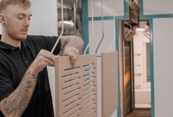 Farby proszkowe IGP-RAPID® chronią detale wykonane z materiałów drewnopochodnych i kompozytowych. Kolory, efekty i różne struktury pozwalają uzyskać indywidualne i trwałe rozwiązania dekoracyjne.